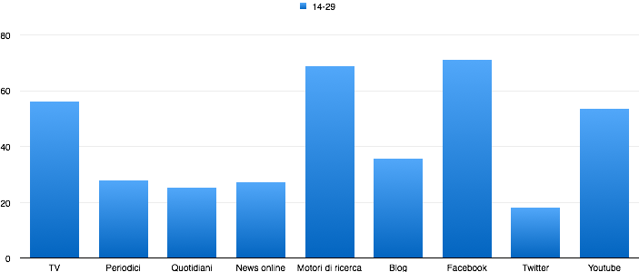 Tv, Video online e social media sono il mix per il target 14/29. Voci indipendenti con una eco di conferma nelle news mainstream sembra essere la chiave per raggiungere i giovanissimi.