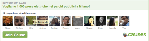 Perché ciò non avviene? Credo per pigrizia o inerzia del sistema. Proviamo a dargli una spinta? Ho lanciato una causa su Causes.com e facebook, se anche voi volete le prese di corrente nei parchi a Milano aderite e “fate un po’ di rumore” portando altre persone interessate, poi, strada facendo, ci organizzeremo meglio.